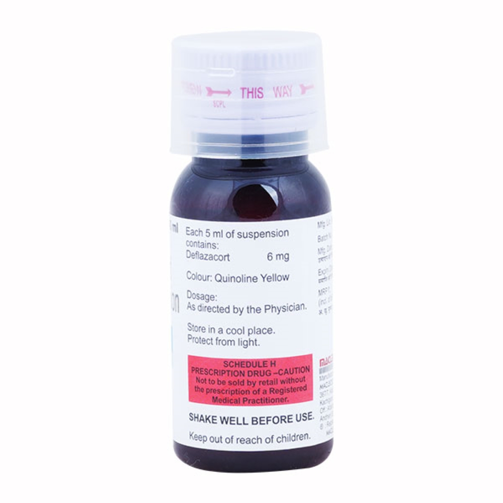 Defcort Oral Suspension gives relief in inflammatory conditions that affect muscles and joints such as arthritis and ankylosing spondylitis. It also helps manage other inflammatory conditions such as asthma, inflammatory bowel disease, uveitis, ulcerative colitis, and allergies. It works by blocking certain chemicals that cause pain and swelling.