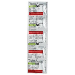 Glucobay M50 Tablet should be taken with food. To get the most benefit, take it regularly at the same time each day. Your doctor will decide what dose is best for you, which may change depending on how it works and your blood sugar levels.Keep taking this medicine, even if you feel well or your blood sugar levels are controlled. If you stop taking it without consulting your doctor, your blood sugar levels could rise, putting you at risk of kidney damage, blindness, nerve problems, and limb loss. As your doctor advises, you should follow a healthy diet, regular exercise, and weight reduction. Your lifestyle plays a big part in controlling diabetes.This medicine’s most common side effects may include flatulence, diarrhea, abdominal pain, fluid retention (edema), and increased liver enzymes. However, these are temporary and usually subside on their own. If these do not resolve or worry you, please consult your doctor. They might suggest ways to manage or treat your side effects if they are bothersome.