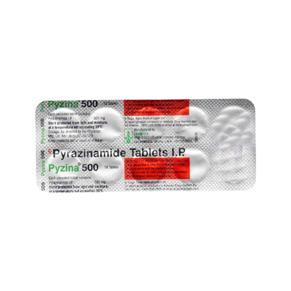Pyzina 500 Tablet is an antibiotic that belongs to a class of medicines known as anti tuberculosis drugs. It is used in the treatment of tuberculosis, an infectious disease that mainly affects the lungs and in some cases other parts of the body.